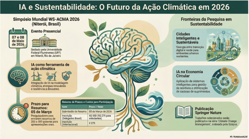O simpósio visa acelerar soluções climáticas impulsionadas por IA, unindo academia e indústria. É uma excelente oportunidade para networking e publicação qualificada sem sair de Niterói.